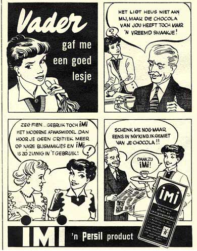 Ook in de jaren '50 bleef men in de reclamewereld steevast gebruikmaken van het medium strip. Naast reclames in stripvorm in dag- en weekbladen, kan bij veel producten ook punten of zegeltjes gespaard worden voor speciale stripboekjes.