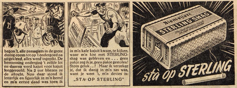 Voor zijn shag-merk Sterling schakelt Niemeijer Gerard van Straaten in om de strip 'De Stoutmoedige Staaltjes van Stuurman Steven' te maken.