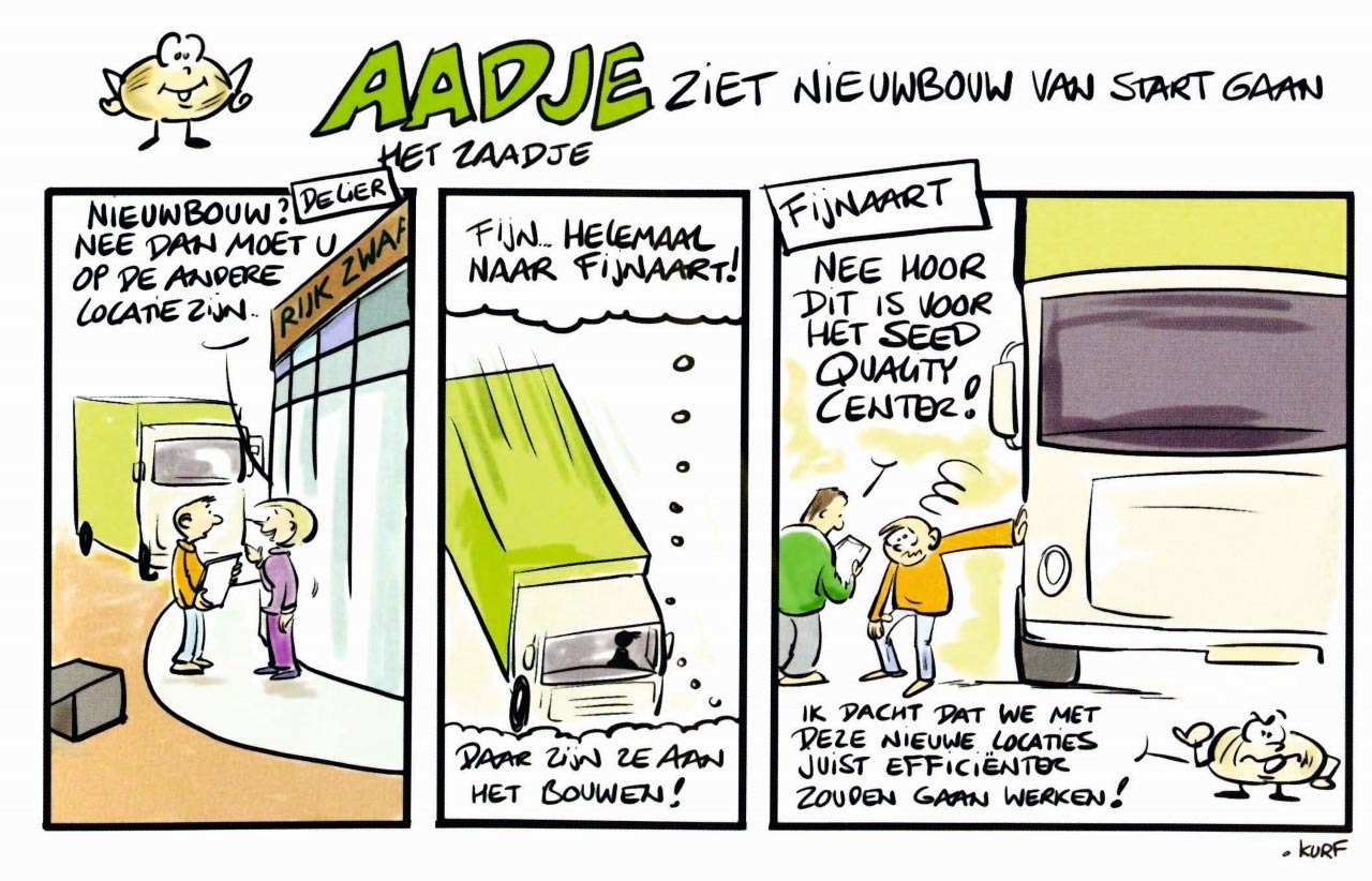 De opmerkelijke strip 'Aadje het Zaadje' verschijnt in het medewerkersblad van groenteveredelaar Rijk Zwaan.