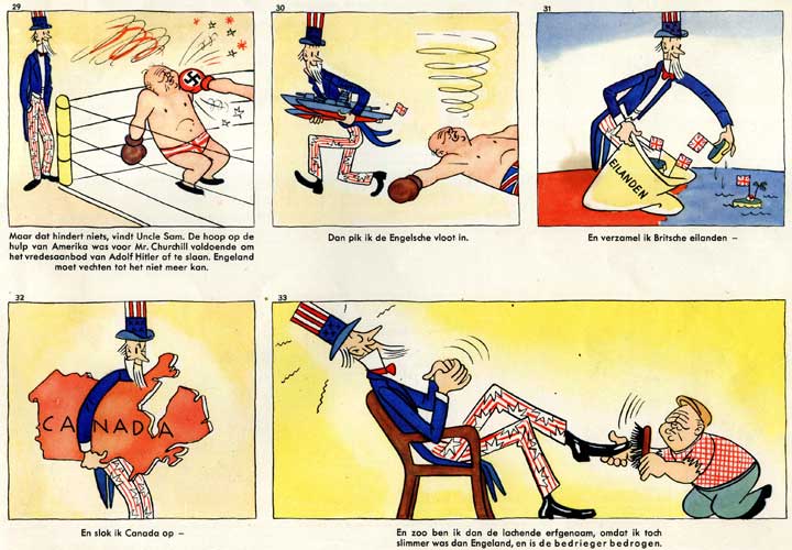 De propagandastrip 'De Bedrieger Bedrogen' verscheen in 1942. De maker is hoogstwaarschijnlijk de Duitser Manfred Schmidt, die vooral bekend is van zijn strip 'Nick Knatterton'. De uitgever is ons onbekend. Mocht iemand meer informatie weten over de achtergronden van dit zeldzame boek, dan horen wij dat graag.