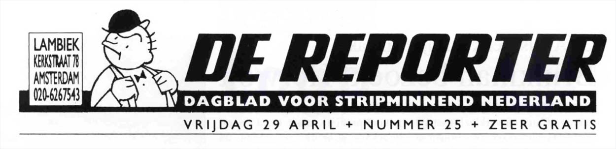 De verrassingsexpo betekende ook de terugkeer van onze nieuwsbrief, De Reporter. Matt Schifferstein van uitgeverij Sherpa drukte op 30 november 1993 een eenmalige editie, waarin verslag werd gedaan van de gebeurtenissen eerder die maand. Vanaf 29 maart 1994 verscheen de titel halfmaandelijks onder supervisie van Kees en Martijn Snoodijk. Martijn tekende voor elke editie een nieuwe header en nam de lay-out onder zijn hoede. De nummers werden nu gepubliceerd op advertentieplaatsen in de stripinformatiebladen Stripschrift en Zozolala. Martijn herinnerde zich dat Kees en hij, om verzamelaars van de wijs te brengen, veel lol hadden met het in de war gooien van de nummering.