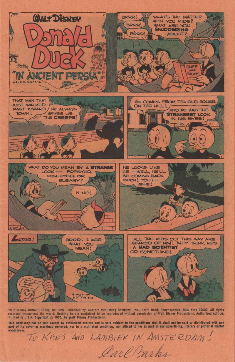 Uitnodiging voor de Mark Beyer expo (de tekening werd ook als zeefdruk verkocht) en de door Carl Barks gesigneerde Donald Duck-strip.