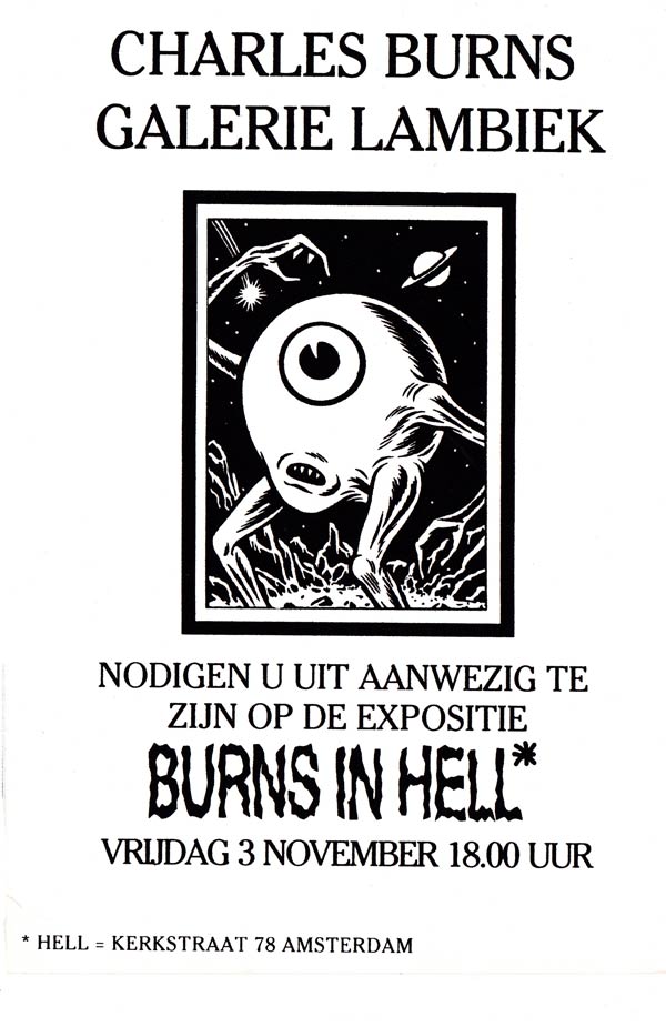 Kort na Halloween (eigenlijk op 3 november 1995) verkeerde onze winkel in een griezelsfeer dankzij het angstaanjagende tekenwerk van Charles Burns. Zijn tentoonstelling 'Burns in Hell' liep twee maanden. Hetzelfde jaar besteedde Lambiek ook aandacht aan twee verschrikkingen uit de echte wereld: racisme en discriminatie. We organiseerden een grote tentoonstelling tegen deze fenomenen. Onder de deelnemende tekenaars bevonden zich Ted Benoît, Peter Pontiac, Maaike Hartjes, Robert van der Kroft, Floris Oudshoorn, Berend J. Vonk, Peter de Wit en Marnix Rueb. De Afrikaans-Amerikaanse Nederlandse zanger Donald Jones, bekend van het liedje 'Ik Zou Je In Een Doosje Willen Stoppen', bezocht de expo ook.