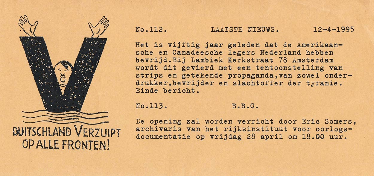 Op 28 april 1995, om de vijftigste verjaardag van het einde van de Tweede Wereldoorlog te vieren, organiseerden Kousemaker en zijn crew een speciale tentoonstelling over strips uit de jaren 1940. Archivaris Eric Somers zette de expo 'De Bevrijding der Nederlanden in Beeldromanvorm' op poten. Nadat onder deze gebeurtenis een lijn was getrokken duwde Hanco Kolk ('Gilles de Geus', 'Meccano') zijn flukse potlood voorwaarts om zijn grafische roman 'Casanova' en andere minimalistische lijntekeningen in onze galerie te presenteren. Tussen juli en 10 september organiseerde Lambiek in de kunstvilla Huis Sonsbeek in Arnhem een expo over striptekenaars die door "serieuze" kunst geïnspireerd zijn of zelf zulke werken maken.