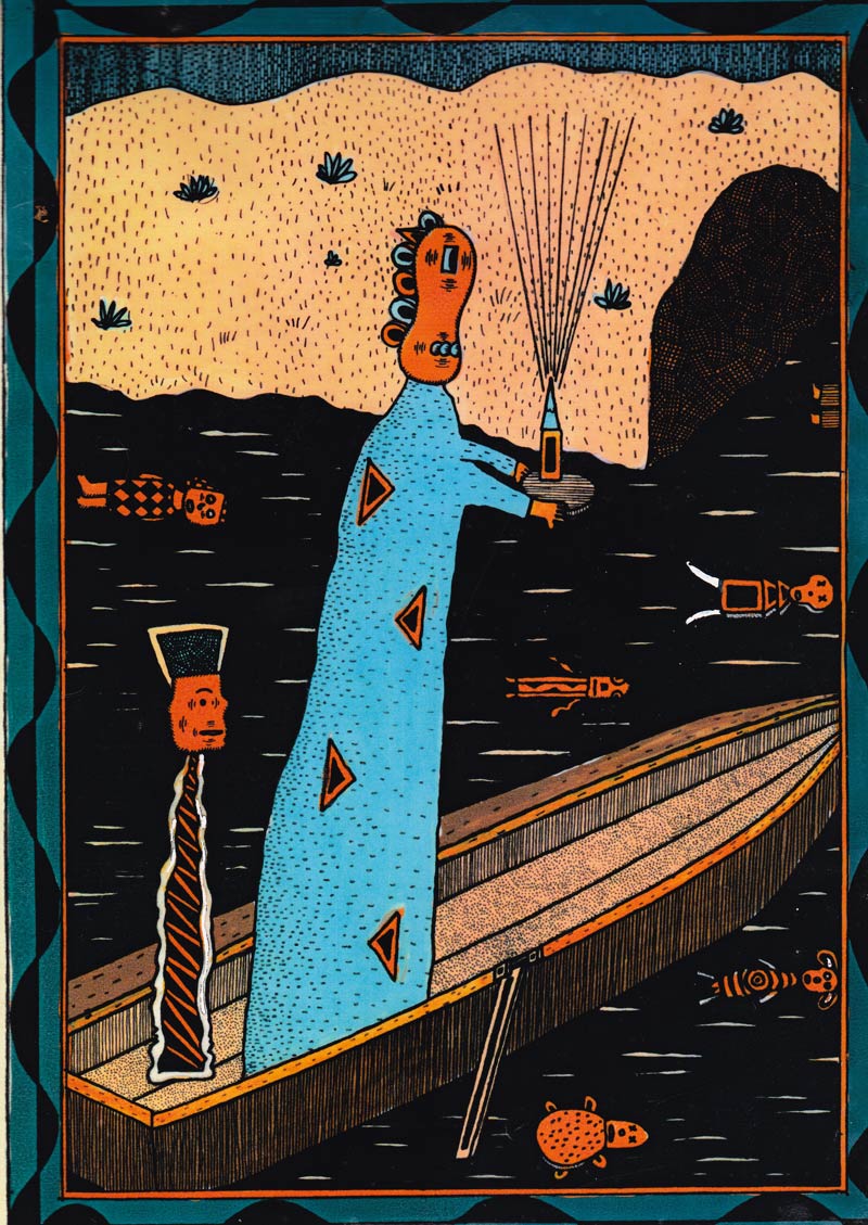 Voor- en achterkant van de Lambiek Almanac uit 1993, getekend door Hanco Kolk.