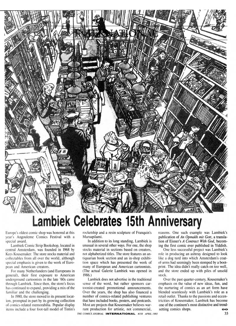 Op 26 juli kreeg Lambiek tijdens de San Diego Comic-Con de Will Eisner Spirit of Comics Retailer Award. Klaas Knol reisde helemaal naar de VS om deze prestigieuze internationale prijs in ontvangst te nemen. Rond dezelfde tijd, tussen 26 juli en 13 augustus 1995, vertrok de hitmusical 'Suske en Wiske: De Stralende Sterren' van het Antwerpse Koninklijk Jeugd Theater op tournee naar Amsterdam. Aangezien de show gebaseerd was op Willy Vandersteens gelijknamige strip was het niet zo verwonderlijk dat de acteurs ook een bezoekje aan Lambiek brachten. Voor de eerste keer kon Lambik (gespeeld door Ronald van Rillaer) de winkel binnenwandelen die naar hem vernoemd was. Hij maakte van de gelegenheid gebruik om dezelfde pose als onze beruchte pop aan te nemen. Deze keer kon de plaatselijke politie er niets tegen doen...