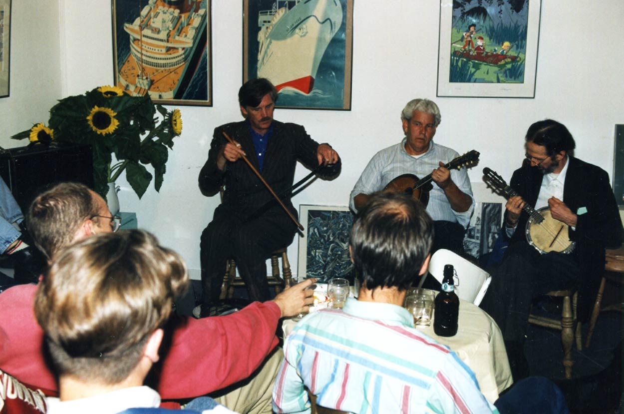 Crumb speelt met zijn band in Lambiek op 24 november 1994.