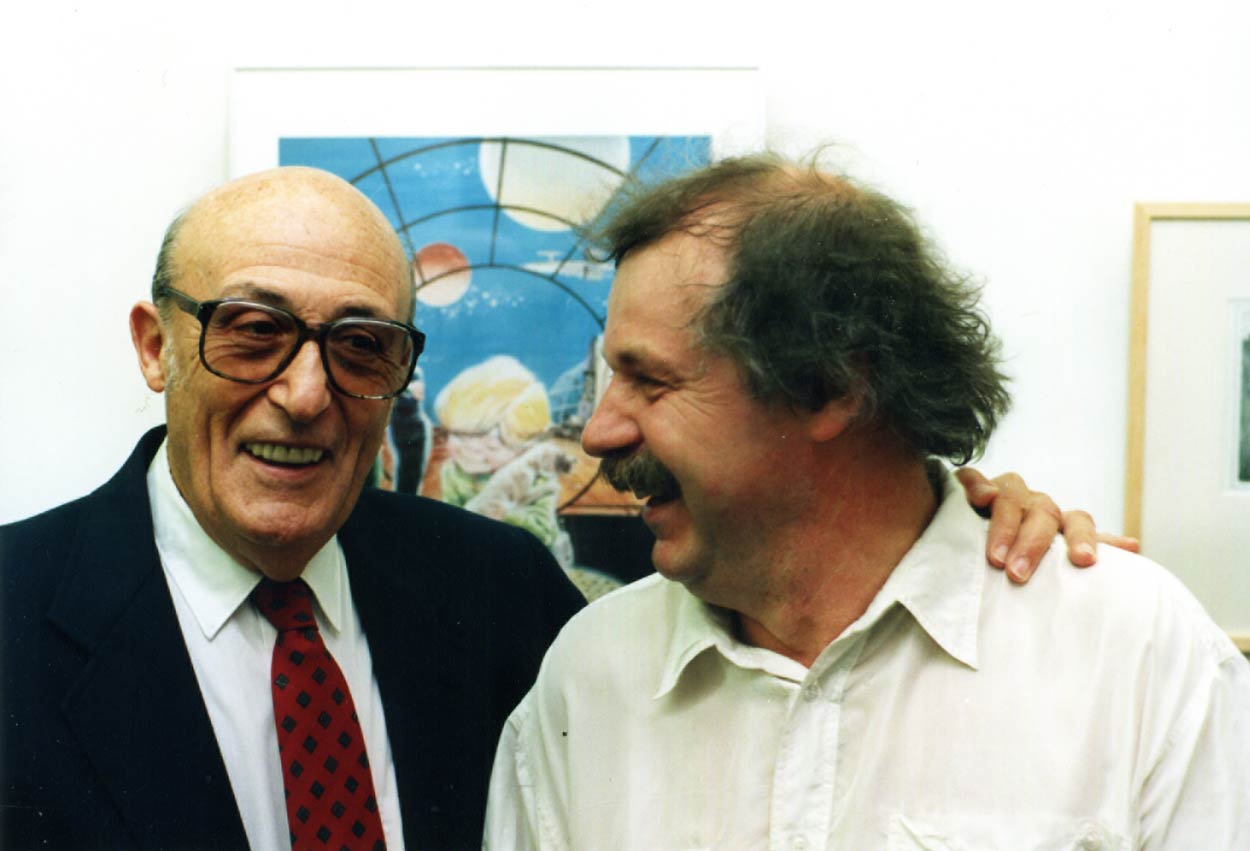 Don Lawrence (rechts) tijdens de opening van zijn expositie.