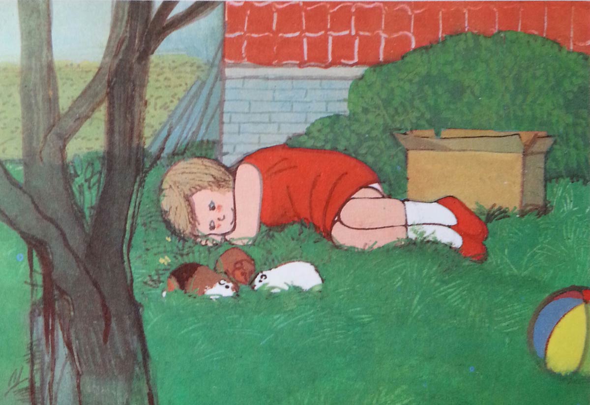 During the 1960s and 1970s, Rietveld designed two sets of children's postcards for the health care foundation "De Opbouw", made illustrations for the publishing house Ploegsma and was present in Malmberg's preschool magazines Primo and Okki.