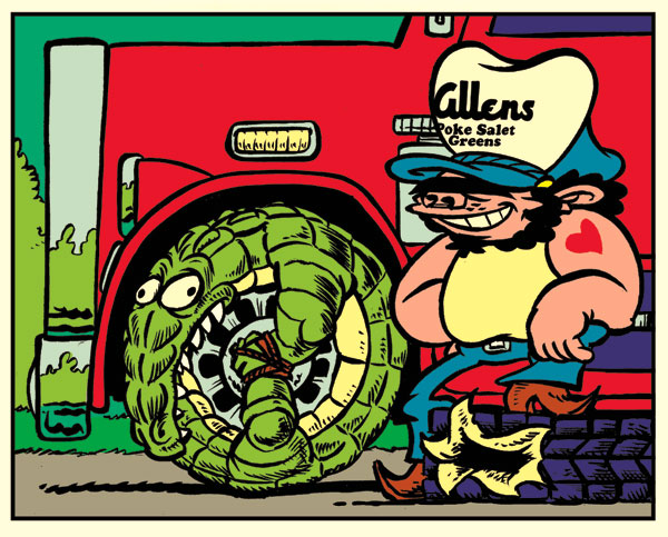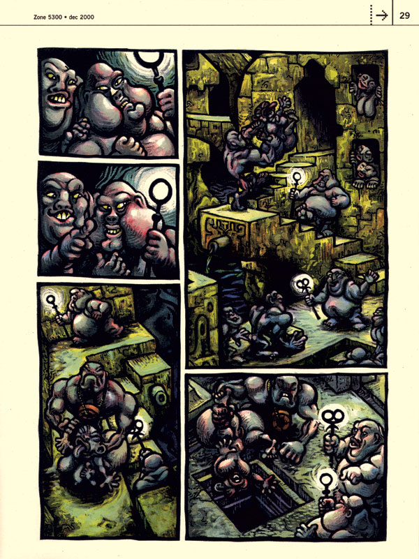 “In eerste instantie deden we álles zelf. Tekenaars benaderen, strips uitkiezen, schrijven, kopiëren, lay-out (met papier, schaar en lijm: het was immers 1994, nog voor het computertijdperk), acquisitie, zelfs adresbandjes om de nummers vouwen en plakken voor de abonnees, stempelen, naar het postkantoor brengen... écht alles dus. Ik concentreerde me op het uitgeven, contacten met de drukker, verspreider, en het betalen ervan.”