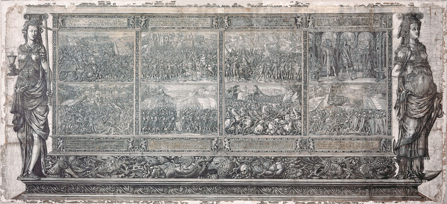 Ironically enough, the Abels worked so long on these reliefs that neither of them ever saw the finished work. By June 1562 they had only finished one relief, the 'Battle of Vicenza'. They employed Flemish sculptor Alexander Colyn to assist them. A year later, other sculptors were brought in too: Franz Willems, Hans Ernhofer and Michael von der Vecken. In hindsight, extra assistance was a wise move, because the Abels all died one year after the other. Bernard passed away on 13 October 1563, Arnold on 15 February 1564 and Florian in 1565, as a result of an unspecified illness. Colyn continued the project, completing the remaining 20 reliefs by 1567.