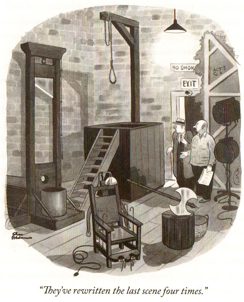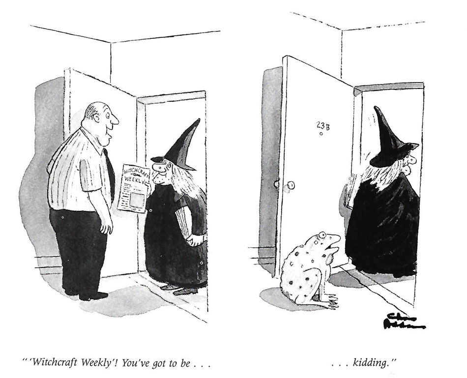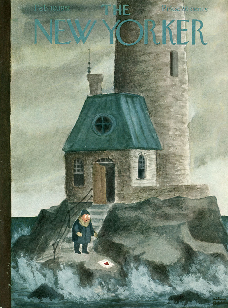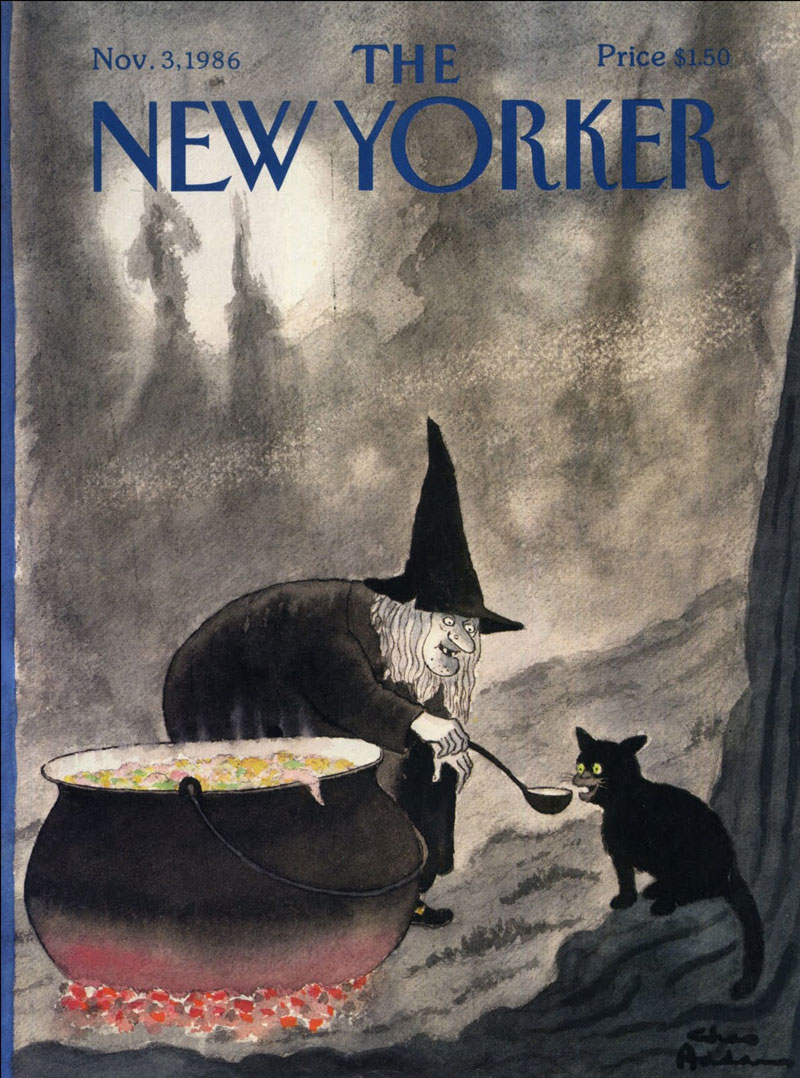 Covers by Charles Addams for The New Yorker, respectively published on 10 February 1951 and 3 November 1986.