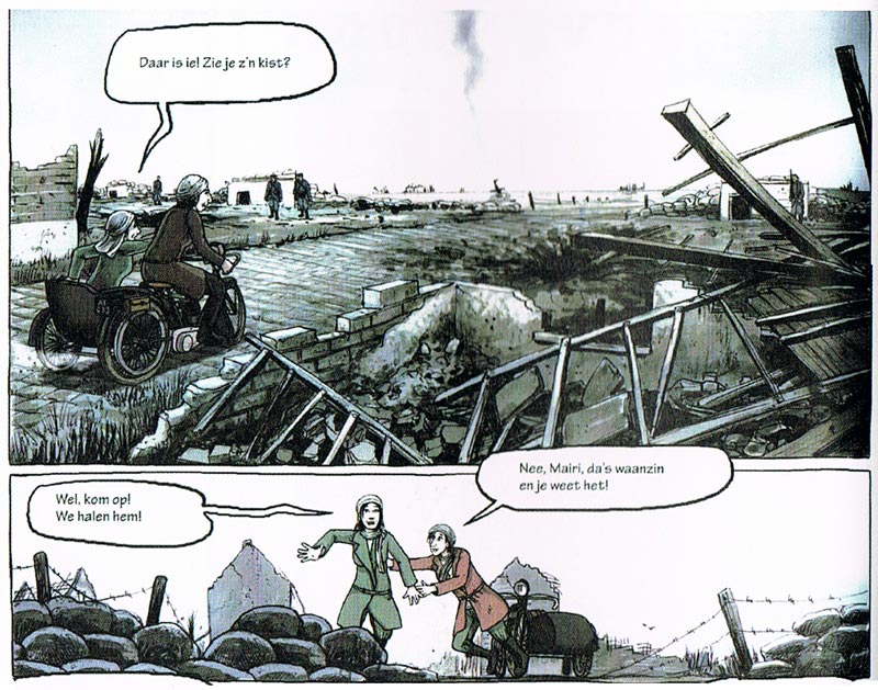 Adriaenssens is especially interested in World War I, and has worked on several books about the Great War for Lannoo. He has made illustrations for the war diaries of soldiers like Odon and Maurice Braet, and released his WWI graphic novel 'Afspraak in Nieuwpoort' (published in English as 'The Newport Gathering') in 2011. It was followed in 2013 by 'Elsie en Mairi'.