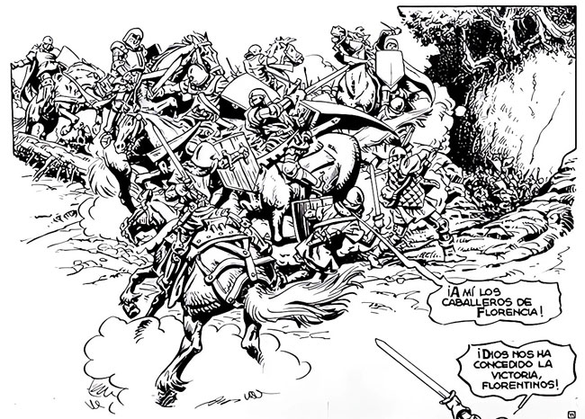 Joining Bruguera's international agency Creaciones Editoriales and later the Spanish-British agency Bardon Art, Juan Alonso became a productive artist for the international market. For the British publishers DC Thomson and Fleetway, he drew war comics, as well romance stories for girls' magazines like Valentine, Mirabelle, Romeo, Bunty and Debbie. One of his serials for Debbie was 'A Lion Called Marmaduke' (1976), a World War II story about two Dutch youngsters trying to find their way home, accompanied by a lion. After a while, Alonso also worked for the Italian market, drawing for the soft-erotic adventure comic books Lucifera and Isabella, both created by writer Giorgio Cavedon for the publisher Ediperiodici.