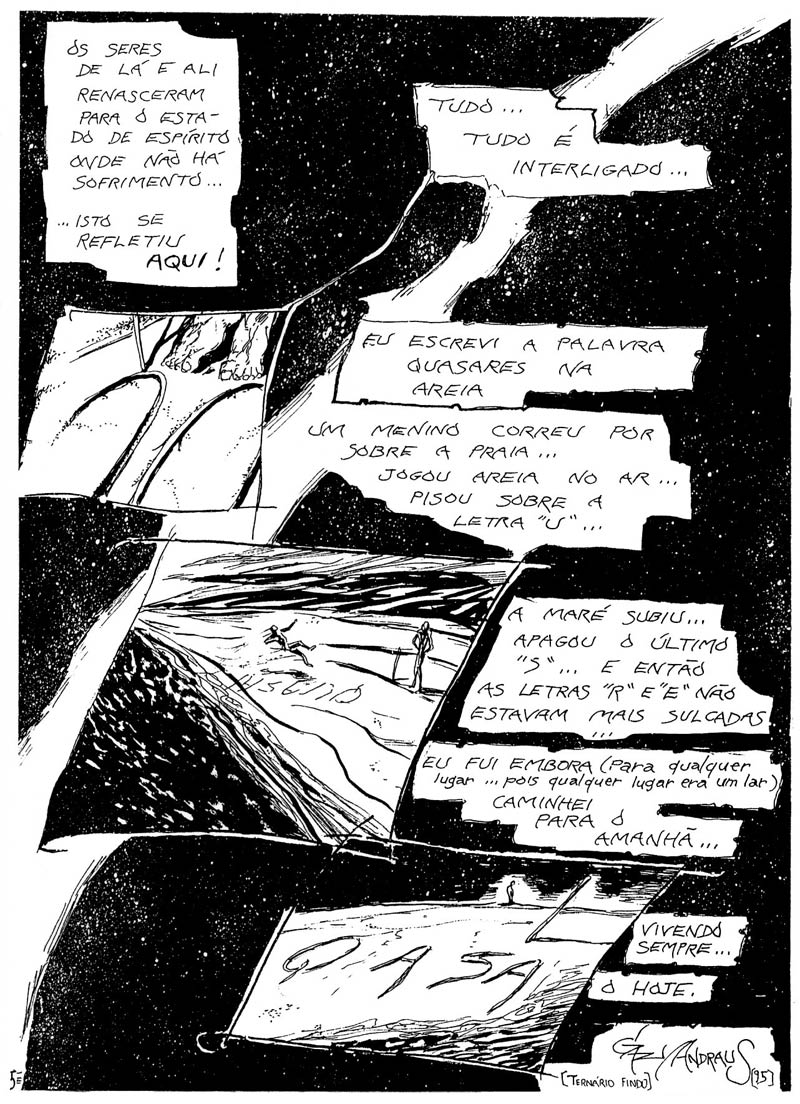 Gazy Andraus is a Brazilian comics researcher and author. He has written many papers and studies about the comics medium, and has worked as an art professor at the FIG-UNIMESP, the Metropolitan University Centre of São Paulo (2005-2016), and the State University of Minas Gerais (since 2017). His poetic and philosophical adult-oriented comics have appeared in fanzines from Brazil and Europe, and in his book 'Ternário M.E.N.' (2001).