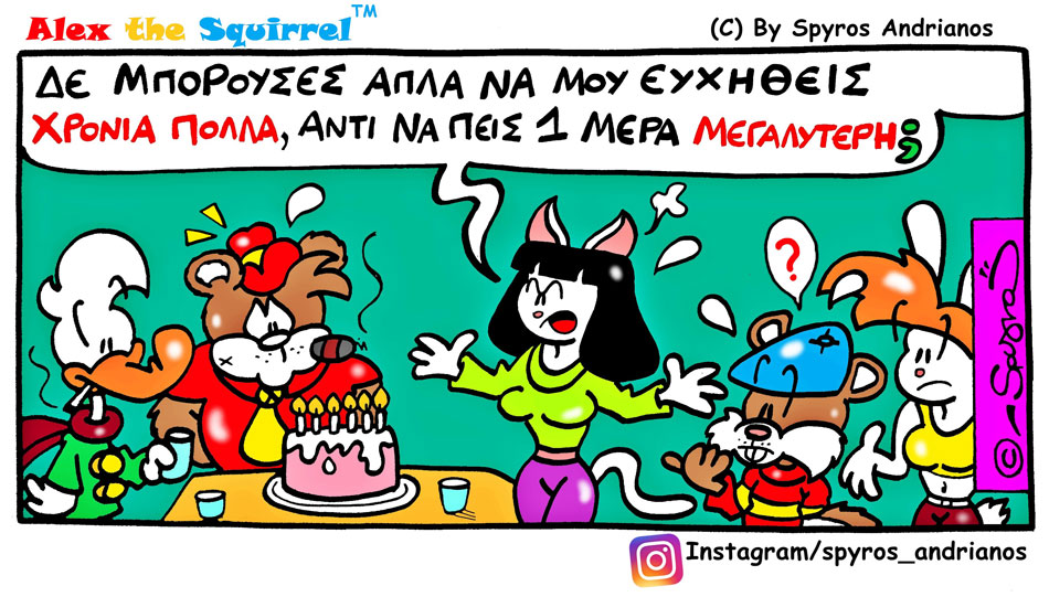 Spyros Andrianos was born in 1977. From 1992 to 1994, he took courses in sketching, painting and animation at a private school with teachers such as Nikos Maroulakis, Yiannis Logothetis, Christos Dimou and others. As a comic creator, he has been influenced by artists such as Bud Sagendorf, Pierluigi Sangalli, Leo Baxendale, Reiser, Édika, E.C. Segar, Osamu Tezuka, André Franquin and Jean Tabary.