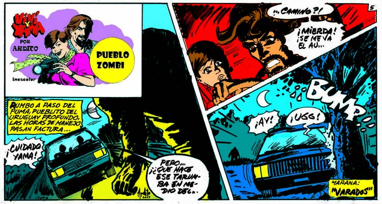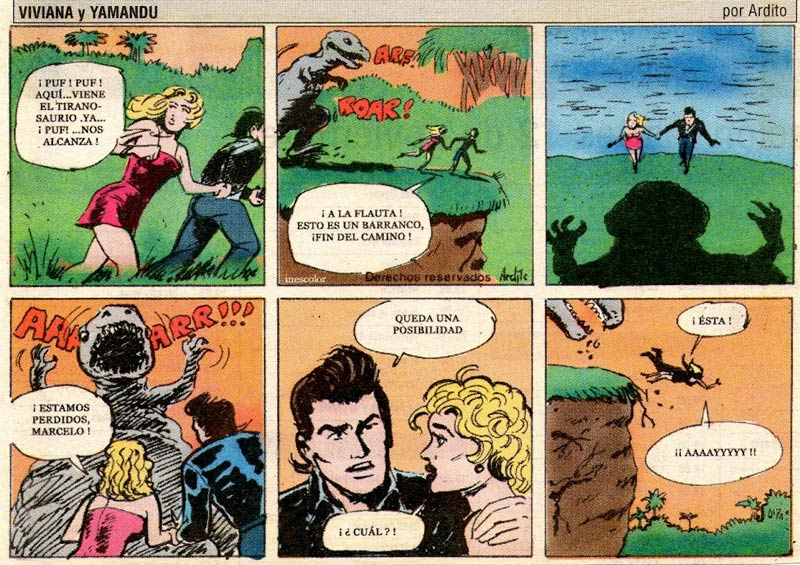 Enrique Ardito is the creator of the long-running newspaper comic 'Viviana y Yamandú', that was published in the Montevideo newspaper La República between 1989 and 2012. The strip originated from two separate comics, one starring the private investigator 'Yamandú Collazo' in 1989, the other photographer 'Viviana Clik' in 1990. When they joined forces in 1991, one of the longest running adventure strips in a Uruguayan newspaper was born.