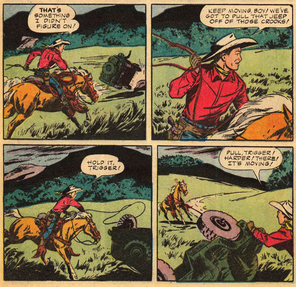 Under the Disney label, Arens drew 'Davy Crockett', 'Mary Poppins', 'Chip 'n' 'Dale', 'Donald Duck' and 'Scamp'. Other Dell titles include 'Range Rider', 'Roy Rogers', 'The Frontiersman', 'Tarzan', 'Korak' and 'My Favourite Martian'.