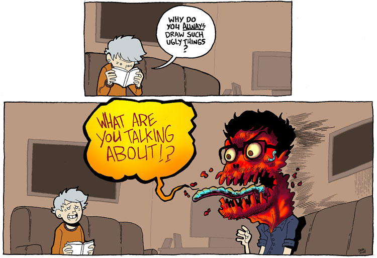His webcomic strip 'Zombie Hipsters' was published in Sweden by FEL Förlag in 2012. He has also made a small press comic book with Syndicaat, and had a story published in the Flemish magazine P@per in 2014. Arruda Massa has made webcomics for GameKid Online (2005), Dailydanger.nl (2007-2014) and his own 'DeadMondays' Tumblr page (since 2013). He graduated as a multi media designer in 2013.