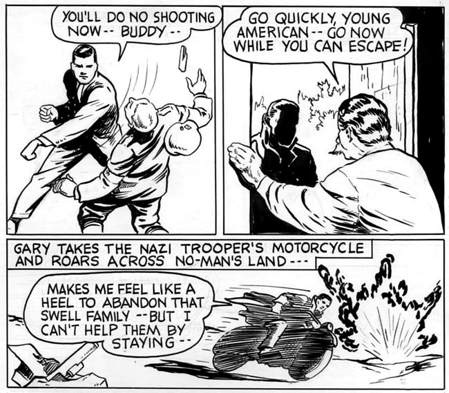 From time to time mural painter and advertising illustrator, Ashe was active as a comic book artist during the 1940s. He collaborated on the Archie periodicals Pep Comics and Top Notch Comics with features like 'The Human Torch', 'Ted Towers' and 'The Wizard'. He also made comic adaptations of 'The Saint' (Lev Gleason) and private investigator 'Mike Shayne' (Dell Comics). Most notable was his version of the series 'Don Winslow of the Navy', which he drew from 1943 on, for Fawcett Publications. Other Fawcett work include 'Commando Yank' for Wow Comics and contributions to Yank Comics.