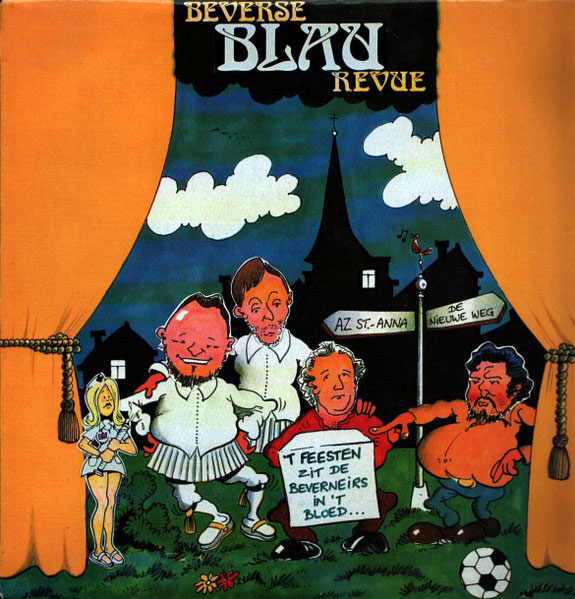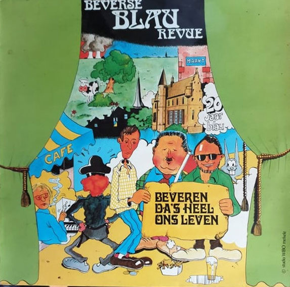Two LP releases by the Beverse Blau Revue, with cover illustrations by Willy Backer Overbeek: 'Beveren Da's Heel Ons Leven' (presumably 1984), ''t Feesten Zit de Beverneirs In 't Bloed' (1989).