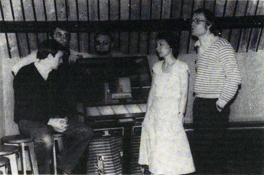 The members of the Beverse Blau Revue, portrayed in the newspaper De Voorpost of 26 February 1982. From left to right: Renaat Stoop, Wilfried Van de Velde, Jaak Bosman, Fons Vermeylen, Monique Rosseel and Willy Backer Overbeek.