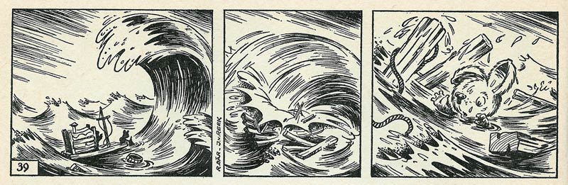 In 1970, the Algemeen Handelsblad merged with the Nieuwe Rotterdamse Courant into NRC Handelsblad. Since the Nieuwe Rotterdamse Courant ran Marten Toonder's 'Tom Poes' - another funny animal comic with social satire - the editors of the newly formed newspaper had to decide which feature to keep. Nonetheless, 'Wipperoen' continued in NRC Handelsblad with new adventures until September 1972. Around the same time, the Toonder Studio's were working on a series of animated cartoons with Bär and Van Reek's character. Unfortunately, the material for this production was in 1971 destroyed in a fire in the Nederhorst den Berg castle, where the Studio's were located. The project was then aborted.