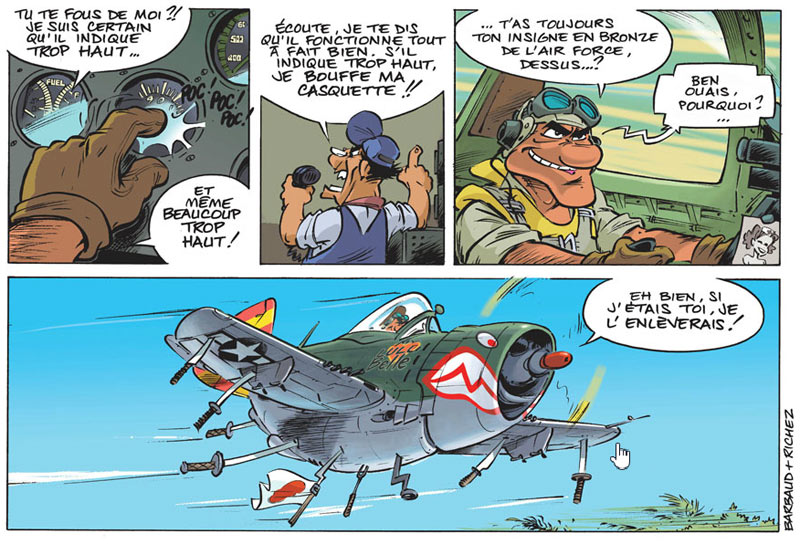 Barbaud is an artist specialized in aviation subjects. For more then 20 years, he drew cartoons for the monthly magazine Le Fana de l'Aviation. Some of these cartoons were collected in the album 'Gueules de Zings' by Vents d'Ouest in 2001. Barbaud's further comic and illustration projects have all dealt with the subject of aviation, such as the illustration books 'Pur Zinc' (with Thierry Cailleteau at Éditions La Sirène in 1993) and 'Les Pompiers en Zings' (with Alexandra Zainal for Mosquito in 2004. He also created the comic series 'Lieutenant Mac Fly' with Fred Duval for Delcourt between 1999 and 2003, and 'Les Dézingueurs' with Hervé Richez for Bamboo since 2009.