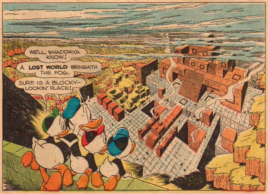 Barks distinguished himself from a lot of other children's comic artists by offering quality artwork and narratives. He was a master in crafting epic adventures, full of thrills, suspense and mystery. Donald and his family often take treasure hunts to exotic countries, ancient civilizations, mythological worlds and/or distant planets. Barks read National Geographic magazine, where he frequently found photographs and articles as inspiration. He spent many hours researching a new story. Whenever he drew a jungle, a desert, a mountainous area, ancient temples, tropic islands or vast oceans he wanted it to look believable. Even if it was set in a fictional location. He drew everything with a keen eye for atmosphere and local color. It made Donald's world feel like its own universe. Many stories have become fan favorites and are to this day still reprinted in Disney magazines worldwide.
