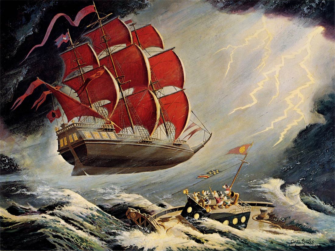 Oil painting by Carl Barks, based on his 'Flying Dutchman' story.