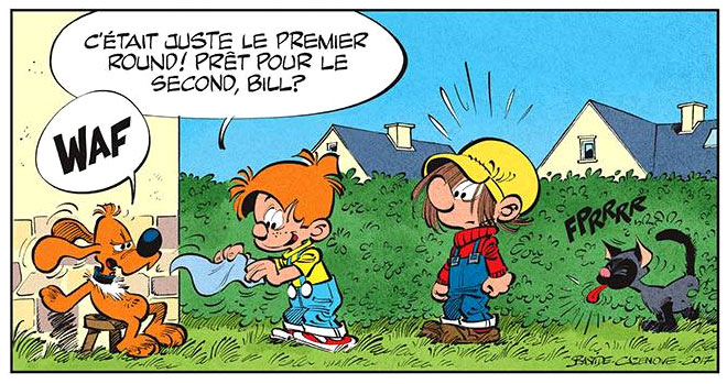 By 2016, Laurent Verron left the gag series 'Boule et Bill' to pursue other projects. Publisher Dargaud hired Jean Bastide to replace him, with gag comic specialist Christophe Cazenove becoming the new writer of the classic gag comic about the kid Boule and his Cocker Spaniel Bill. Switching from a semi-realistic to a humorous drawing style, Bastide decided to stay true to the style and tone of the series' creator, Jean Roba. Instead of continuing in line with Verron's gags, Bastide's main inspiration became the Roba episodes from the 1980s. Bastide and Cazenove's first album was the 37th installment in the series, published in 2016. Highlights of their tenure have been the publication of the comic's 40th album and the series' festive 60th anniversary in 2019.