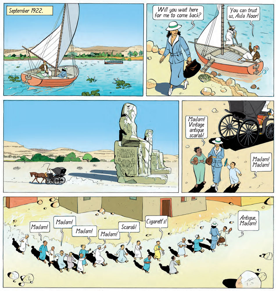 Like her signature 'Nofret' series, Sussi Bech's crime story 'Aida Nur' (1991) was also set in Egypt, albeit in 1922. Appearing in two volumes, the main character is the dancer Aida Nur, who is drawn into dramatic intrigues after accidentally becoming a middleman in the illegal sale of antiquities from a previously unknown pharaoh's tomb. Before the book publication, 'Aida Nur' was serialized as a daily feature in the newspaper B.T. The series was also published in Dutch and French.