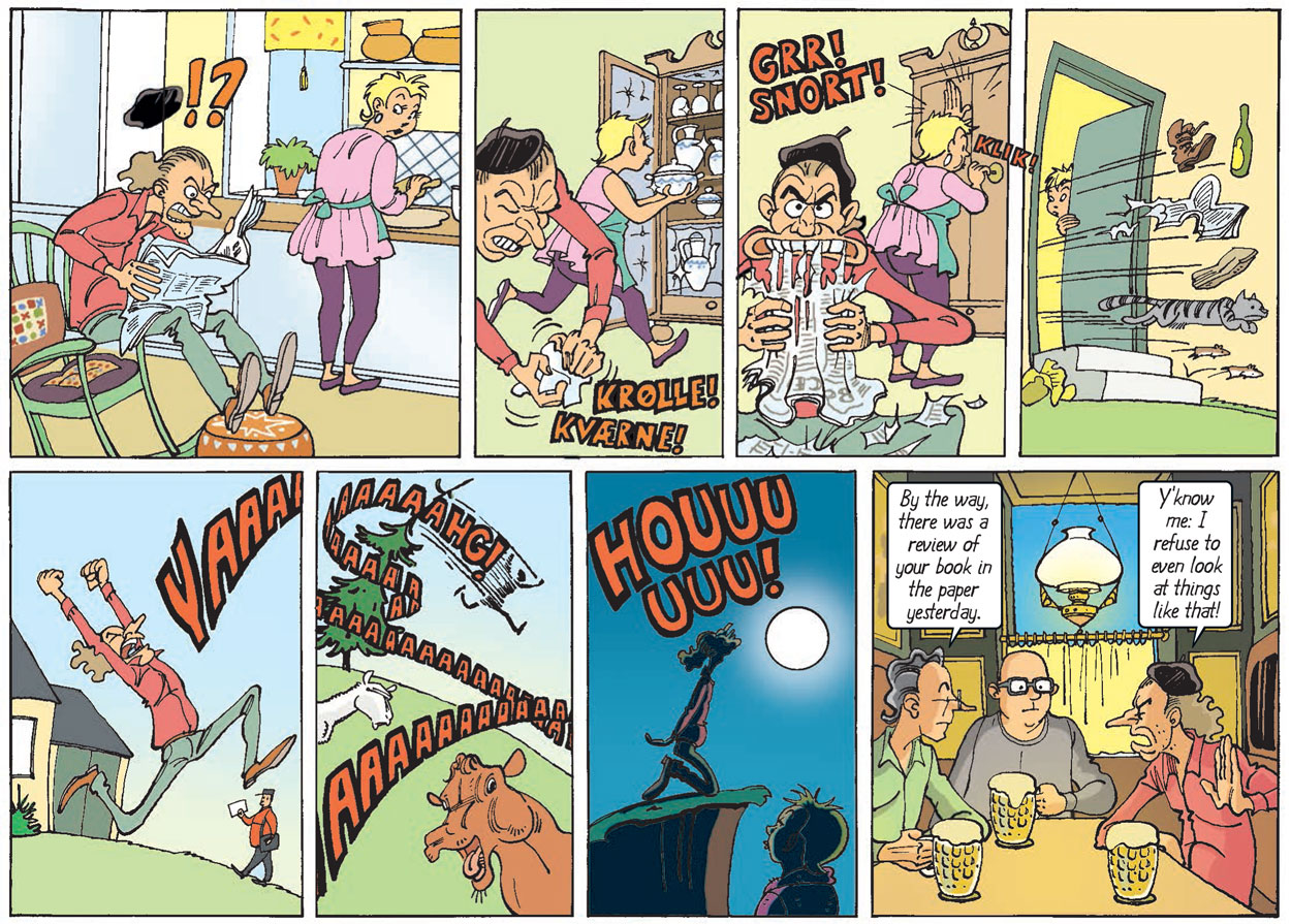 In 2024, a collected edition, 'Den store Finn Sysholm' ("The Great Finn Sysholm"), was published, featuring the 235 best strips with commentary by Frank Madsen. The book also has an accompanying text by the fictional author Finn Sysholm, a character from the strip, recalling events in Danish and international literature from the period 2010-2020.
