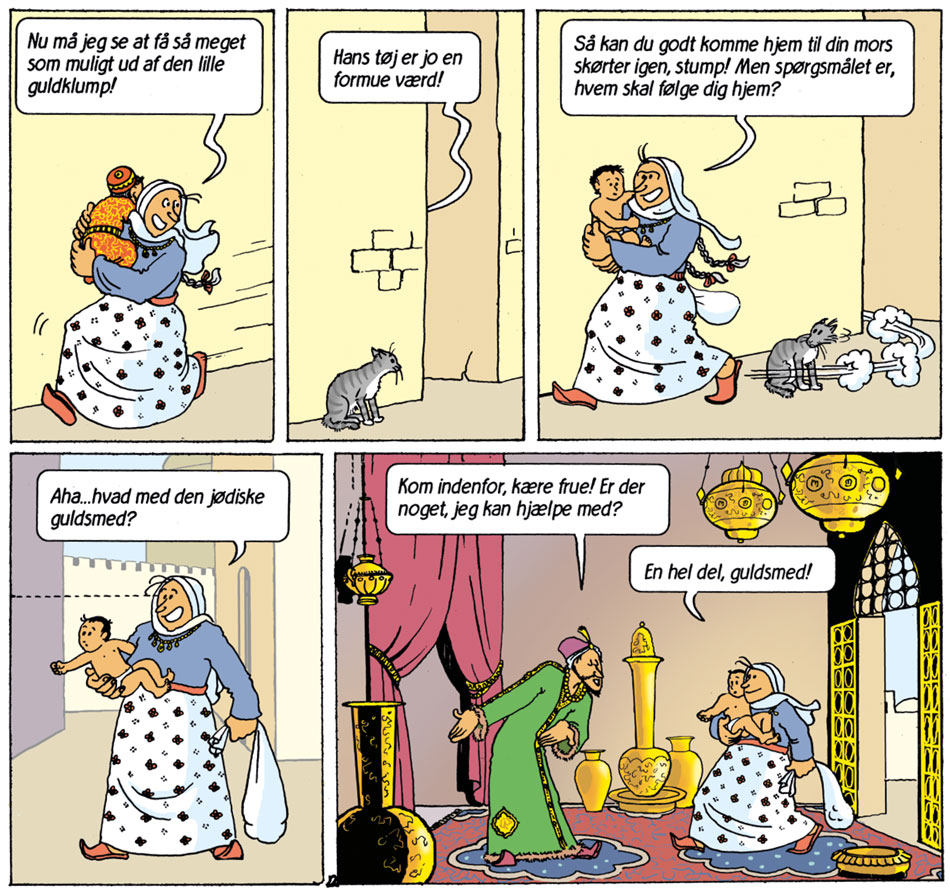 By the time Sussi Bech graduated from the Art Academy, she was already working on her first comic projects. They were based on the 'Arabian Nights' tales, but infused with Bech's own ideas and insights into 9th-century Baghdad during the reign of Harun al-Rashid. In her original story, Bech told the adventures of 'Dalila den Drevne' ("Delilah the Crazy") and her daughter Zainab. This story of nearly 100 pages wasn't published until 1993, when it appeared in two black-and-white albums under the banner 'Fra Sussi Bechs arkiv' ("From Sussi Bech's Archives").