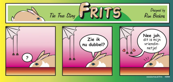 'Frits', comic strip for De Natuurgids (2008). Translation: "Am I seeing double?" - "No, this is my girlfriend!".