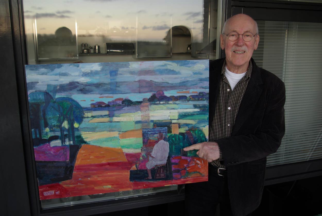 In his spare time, Van Beek had been making paintings since the 1950s. Back then, he lived with the portrait painter Piet Jabaay in the Veluwe countryside, where he made his first oil paintings. After their marriage, Albert and Hennie van Beek spent thirteen years living in Amsterdam, before settling in a farm in the rural town Zuiderwoude. In 1987, the couple bought a home in Durfort-et-Saint-Martin-de-Sossenac in the South of France. The French scenery offered enough inspiration for Van Beek to fully focus on painting. He experimented with different styles, genres and techniques, doing (self-)portraits, abstract works, street scenes and thematic pieces based on bullfighting and the carnival. In their downstairs gallery, the Van Beeks exhibited Albert's paintings and Hennie's handicraft works, which included knittings, puppets and self-made bags. Since 2000, the Van Beek couple divided their time between their French house and the Dutch apartment in Purmerend. By 2021, Albert and Hennie van Beek were back in the Netherlands for good, since most of their artistic friends in Durfort had passed away.