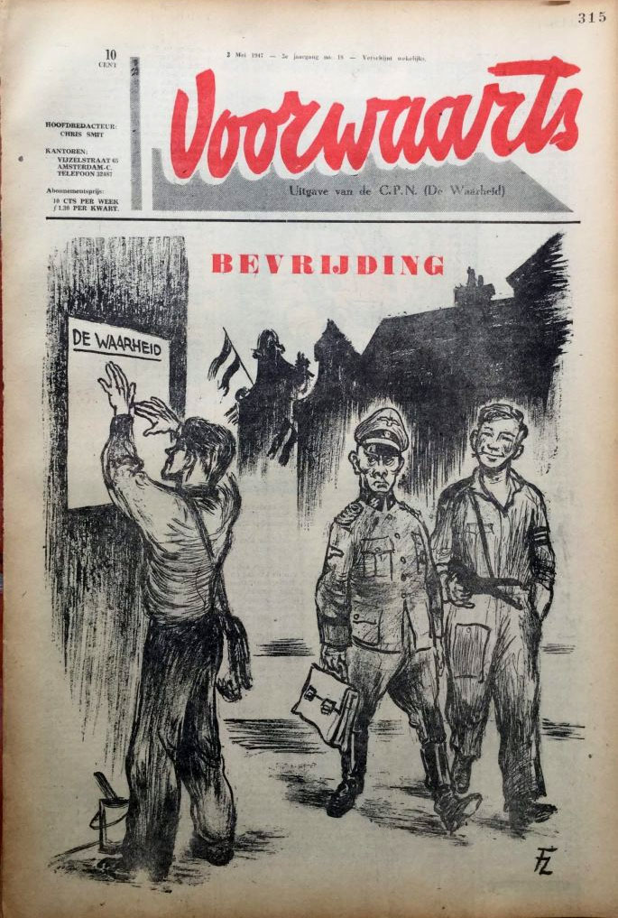 Cover cartoon for Voorwaarts (May 1947).