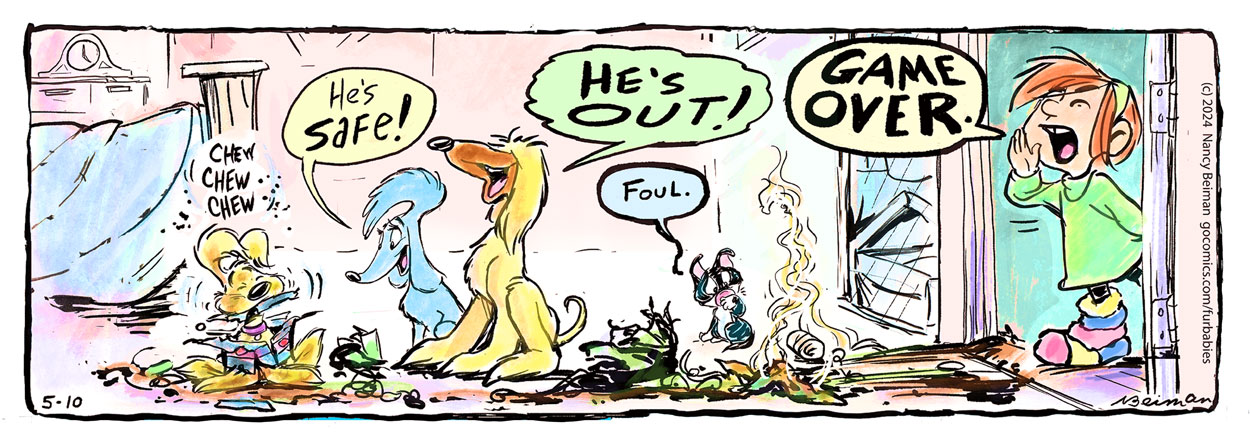 In 2022, Beiman began drawing her own 'FurBabies' comic strip. It was accepted by Andrews McMeel and has appeared daily on the GoComics website starting on 5 June 2023. The comic is about a blended-species family of dogs who live in a big city apartment. They have a puppy son and cat daughter. Their human, 9-year old Kate Buffet, can speak with all animals. The strip is seen entirely from the point of view of the animals. A recurring theme is the conflict between the natural world and modern technology. In March 2026, Beiman released the first printing-on-demand collection of 'FurBabies' comic strips, 'Do Cats Grow on Cat Trees?'.