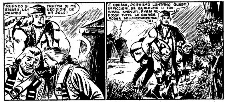 When in 1964 the EsseGesse collective ended their collaboration with Edizioni Dardo, the brothers Nicola and Mario Del Principe asked Benni to continue their two popular comic series, the western 'Capitan Miki' and 'Il Grande Blek', about the leader of a group of trappers during the American Revolutionary War. Assisted by Nestore Del Boccio, who was from the same town, Benni drew about thirty episodes of each series, all at a rate of two a week (one Miki and one Blek). These comics were also very popular in France, where Lug ran them in titles like Rodéo and Kiwi. For the French market, Benni and Del Boccio also worked on episodes of a later EsseGesse creation, the muscular marksman 'Alan Mistero', published in France as 'Ombrax'.