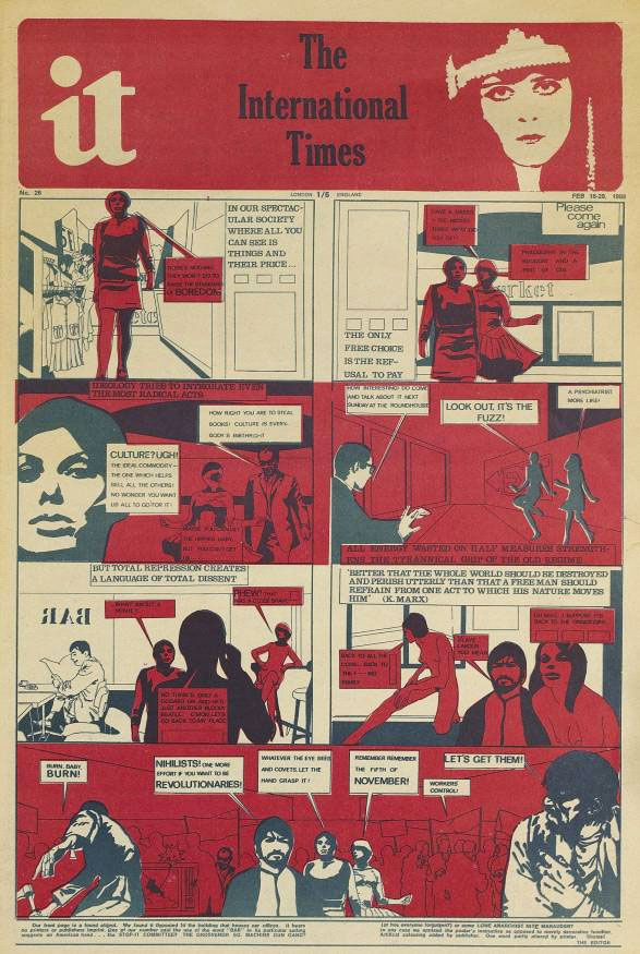 English-language version of Bertrand's 1967 comic strip adaptation of a text by Raoul Vaneigem, printed on the front page of The International Times, credited to "André Bertram".
