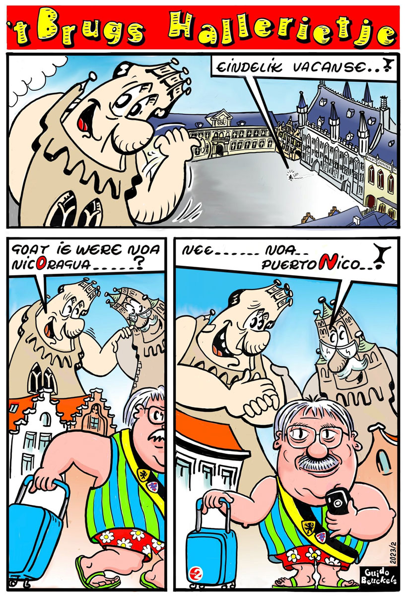 ''t Brugs Hallerietje' (2023), with a cameo by former radio host Nico Blontrock, who later became municipal officer of Culture in Bruges. He says he isn't going to "NICoragua" this year, but to "Puerto NICO".