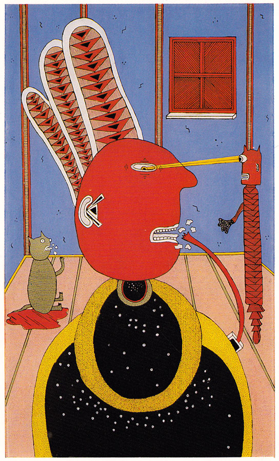 After Spiegelman's 'Maus' was completed, RAW came to a sudden stop. Mark Beyer had made a name for himself, but at the same time had difficulties keeping his audience. At the 1994 Galerie Lambiek exposition of Beyer's art, the artist made special silk screens, postcards and paintings on Plexiglas. Beyer's animated art could be seen on MTV's series, Liquid Television. Mark Beyer is best known for his "art brut" comix style, which gives his work an unmistakable cult appeal.