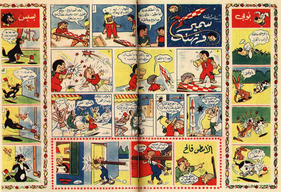In 1960, Bahiga Thomassian moved to Lebanon, where she drew for her own children's magazine Bissat El-Reeh ("Flying Carpet"), published by publisher Zuhair Baalbaki. Printed in offset, in full color, Bissat El-Reeh transformed the Arabic comic book genre from a modest sub-category of entertainment publications into a profitable industry. Bissat El-Reeh ceased publication in 1965, shortly after Bahiga emigrated to the USA. Among the magazine's other artists were Mahmoud Kaheel and Tareq Assali. Attempts to revive the magazine in 1968 and in 1970 were short-lived. A more successful attempt was made in 1978, which lasted until the war in Lebanon killed it off again in the mid-1980s. In Lebanon, Bahiga also made comics and cartoons for the newspaper Al-Anwar of publisher Dar El Sayyad, contributing especially to its children's supplement.