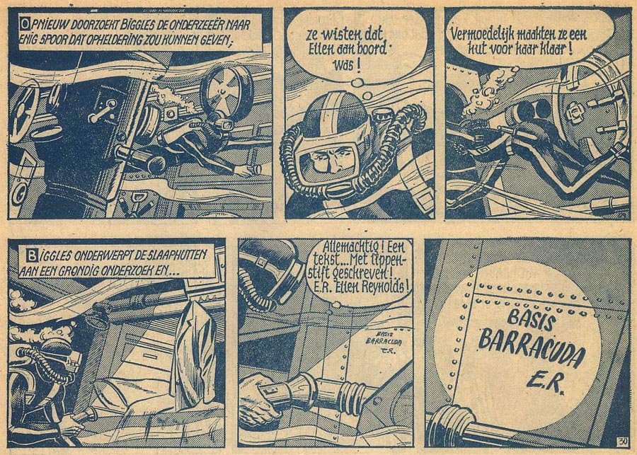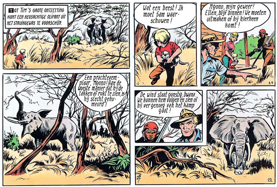 Halfway through 1967, Frank Sels and Edgard Gastmans complained to Vandersteen that Verschuere missed his deadlines too often and strongly insisted that their taskmaster should fire him. So it happened, but Biddeloo was laid off too. His mother paid Vandersteen a visit and asked him to at least let Biddeloo stay until the end of his contract. During these three months, the young artist proved his talent and reliability. Biddeloo was not only rehired, but even promoted. In Vandersteen's Kalmthout studio, Biddeloo assumed inking duties over 'Karl May' (1962-1977) and 'Biggles' (1965-1970). 'Karl May' was another western series, based on the popular 'Old Shatterhand and Winnetou' stories by German novelist Karl May. 'Biggles' was loosely based on W.E. Johns' popular boys' novels about an R.A.F. aviator. After the thirteenth story, 'Objectief Boomerang' (1967), Biddeloo took over 'Biggles' completely and penciled and inked the series for two years. When 'Biggles' was canceled, Biddeloo worked on Vandersteen's short-lived jungle adventure series 'Safari' (1969-1974), which was inspired by the popular TV series 'Daktari' (1966-1969). However, the series the artist liked best was 'De Rode Ridder' (started in 1959).