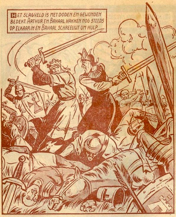 During the late 1960s, Biddeloo's long tenure on 'De Rode Ridder' took off. The first story he worked on was 'De Wilde Jacht' (1968), albeit only as assistant inker. Starting with the 1968 episode 'De Verzonken Klok', he became the main penciler and inker. With 'De Barst in de Ronde Tafel' (1969), Biddeloo made his debut as co-scriptwriter. The plot revolves around a crack in the Round Table, which causes division among Arthur's knights. The same story also introduced a new recurring character, created by Biddeloo: Bahaal, the Prince of Darkness, a demonic wizard who remained Johan's nemesis for the rest of the series.