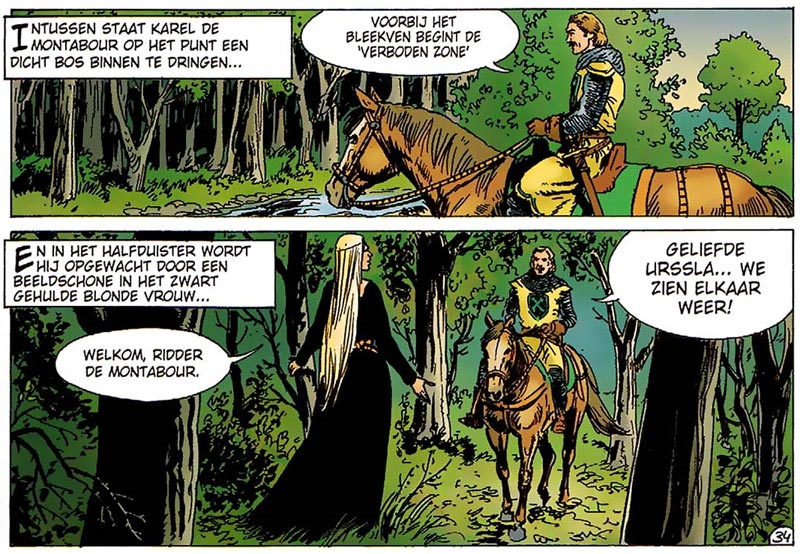 Karel and Ursula Biddeloo have important roles as Lady Urssla and Karel De Montabour in 'De Sluier van Wuustwezel', written by Martin Lodewijk and drawn by Claus D. Scholz.
