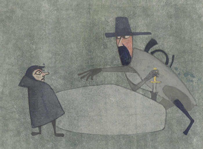 Cor Blok read 'Lord Of The Rings' in the mid-1950s, long before Tolkien was a household name. Beginning in 1958, he started creating paintings inspired by Tolkien's Middle-Earth characters, making around 140 total illustrations by 1962. Blok deliberately used a minimalistic style, leaving enough room for readers to use their own imagination to fill in details. Blok's work caught the attention of Het Spectrum, the Dutch publisher of 'Lord of the Rings', who in turn put Blok in contact with Tolkien's UK publisher, George Allen & Unwin. Through them, five of Blok's "Ring" illustrations were sent to J.R.R. Tolkien. In a letter to Rayner Unwin, Tolkien wrote: "I think they are really fascinating ... I'd love to see more, in the hope that a few are as beautiful as 'The Battle of the Trumpeter'. The other four were great as paintings, but ugly as illustrations." In August 1961, Cor Blok met J.R.R. Tolkien at the novelist's home on Sanfield Road in Oxford to discuss his illustrations. The author purchased two of Blok's paintings to be framed and hung in his house: 'The Battle of Hornburg' and 'The Dead Marshes'. Blok presented Tolkien another of his paintings, 'Dunhov', as a gift.