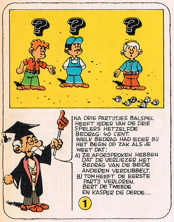 Guy Bollen was an artist affiliated with the art studios of the publishing house Dupuis in the 1960s and 1970s. He had completed his studies in 1959 and was employed by Dupuis in 1961. He was responsible for several editorial illustrations in the magazine Spirou from the mid-1960s, and he also provided the art for a great many game pages in cooperation with Cary Page (Charles Jadoul), such as 'Jeux de Cary Page' (1966-1967) and 'Jeux de Patate et Tatou' (1967-1975). In 1976 he made 'Schtroumpfez avec Nous', a game page starring Peyo's Smurfs, on his own. Other game pages by Bollen include 'Trioker' in 1970 and the first episodes of 'Le Coin des Cerveaux' in 1971.