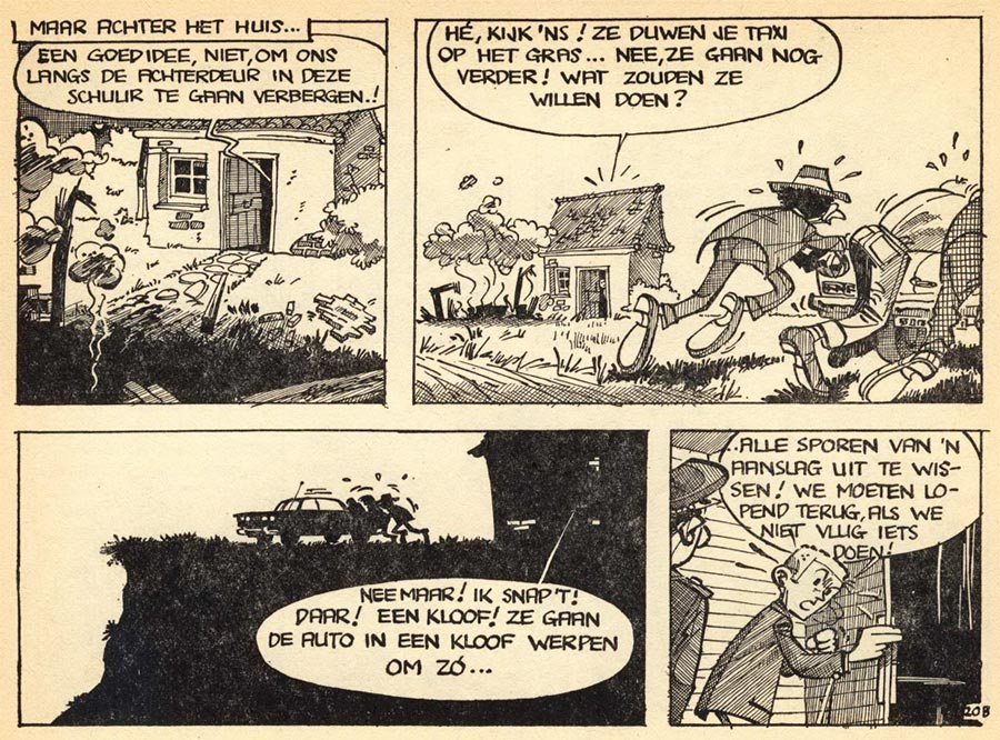 Between 1970 and 1971, Van den Boogaard drew the comic feature 'Jan Alleman' for the Amsterdam-based countercultural magazine Gandalf. The comic strip stars an average Joe, literally named that way, in stories with social-political commentary. The hopeless and lonely protagonist struggles through life, and constantly represses his fantasies. Darker in tone than Van den Boogaard's previous comics, this painful document of social isolation was collected in the book 'Jan Alleman Kan D'er Wat Van'  (De Bezige Bij, 1972). Between 1973 and 1974, Theo van den Boogaard worked on several one-shot comics within the realm of underground comix. In expressive realism, 'Arme Jimmy' (1973) tells the dull life of a young, depressed gay man in his sadly modern apartment. Equally expressive, but with influences from Mad Magazine, was 'De Ideograaf' (1974), about a bored comic artist who invents a machine that instantly executes each idea. While the story was created in 1974, it wasn't published in book format by Espee until 1980.