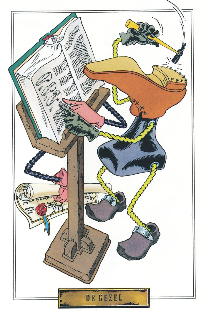 In addition to comics, Theo van den Boogaard illustrated covers for albums with Sjef van Oekel songs, as well as comedy and musical records based on other radio and TV shows by Schippers, such as 'De Lachende Scheerkwast', 'Ronflonflon' and 'Opzoek Naar Yolanda'. He also used his talent for other projects, like a graphic contribution to Paul De Leeuw's CD 'Stille Liedjes' (1991) and Joost Prinsen's record 'Een Kop Die Je Zelf Niet Bevalt' (2003). Van den Boogaard has been an illustrator for magazines like Vrij Nederland, HP/De Tijd, NRC Handelsblad and Playboy, and the creators of advertisements promoting Adformatie, the Amsterdam Municipal Transport Company GVB, the Dutch Ministry of Health, Welfare and Sport and most notably the Dutch Railways. The artist illustrated railroad timetables, and has made detailed drawings of a great many Dutch railway stations. In 2012, he made an illustrated glass-in-lead window for the Bakenesser church in Haarlem. Since 2013, portraits of Dutch jazz legends can be seen at the Oude Binnenweg in Rotterdam, drawn by Theo van den Boogaard, Jan Kruis, Wouter Tulp, Louise Lagerwij and Martin Valkhoff.